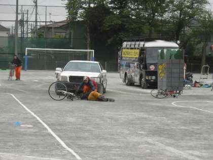 5月6日午後、スケアード・ストレート方式の交通安全教室を行いました。スタントマンによる交通事故の再現を通し、事故を回避し、交通安全を学ぶことを目的に開催しました。スタントマンの実演は迫力があり、交通ルールの重要性を真剣に学ぶ事ができました。