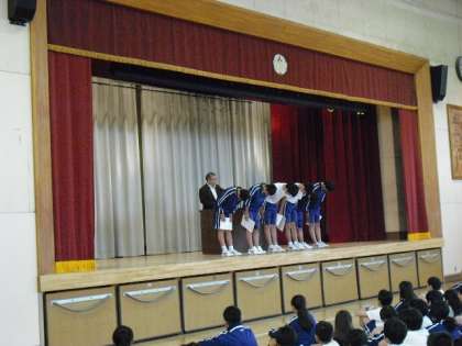 また、先月行われた部活動の春季大会で活躍した陸上部、バドミントン部の表彰がありました。
