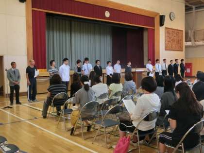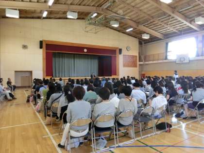 5月14日(土)部活動保護者会を行いました。本校は運動部9種、文化部6種、計15種の部活動があり、全校生徒の約9割、529名が入部しています。全体会で顧問を紹介した後、各部会を行いました。保護者の方に部費などの会計を引き受けていただくなど連携して部活動を運営しています。