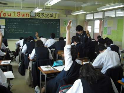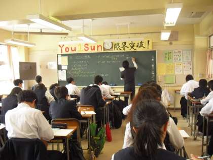 3年生は数学で式の展開を学習しています。乗法公式を学習した後、2つの項を1つの文字に置き換えて展開する問題にも意欲的に取り組んでいます。