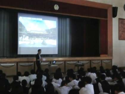 京都在住の「らくたび」若村様に、訪問先の京都の寺社寺院についてのお話を聞きました。京ことばを交えてわかりやすい語り口で、生徒達も9月の訪問を心待ちにしていました。