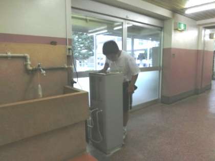 これから暑い夏を迎えるにあたって、PTAから冷水器を体育館、南校舎に2台寄付していただきました。ありがとうございました。こまめに水分補給ができ、生徒達も大変喜んでいます。