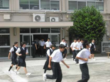 6日(水)5時間目、今年度4回目の避難訓練を行いました。今回は緊急地震速報を受信したという設定で、机下避難及び校庭への避難を行いました。的確な判断ができるようになるために集中して取り組む必要があります。