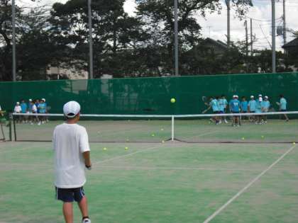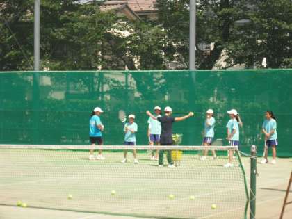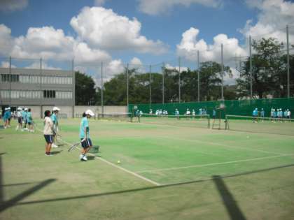 長かった梅雨が明け、暑さが戻りやっと夏休みらしい気候になってきました。今週テニス部は都立芦花高校様のご厚意によりテニスコートをお借りして練習しています。部員が約80名もいるので4面をお借りしての練習は非常に充実したものになっています。
