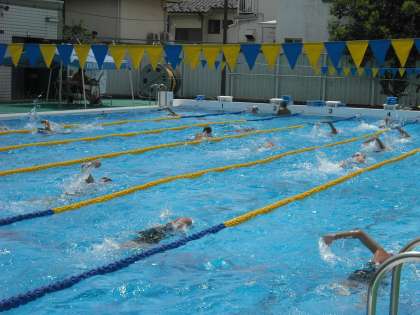 水泳部はプールが屋外にあるため、プールを使用しての活動は夏場の時期に限られてしまいます。短期集中で活動しています。