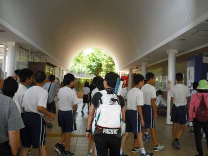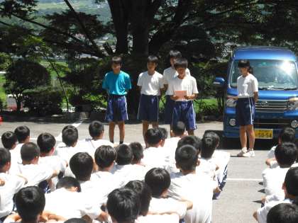 途中、談合坂で休憩をとり、渋滞もなく予定より早い11時に宿舎に到着しました。すぐに開会式が行われ、校長先生の話の後、各部活動の部長から合宿の目標、決意の宣言がありました。