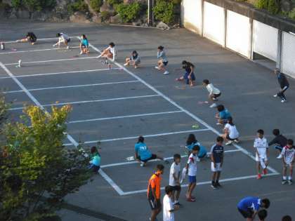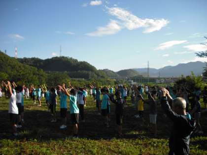6時15分から朝礼を行います。その前に軽いジョギングなどの朝練習を行う部活動もあります。