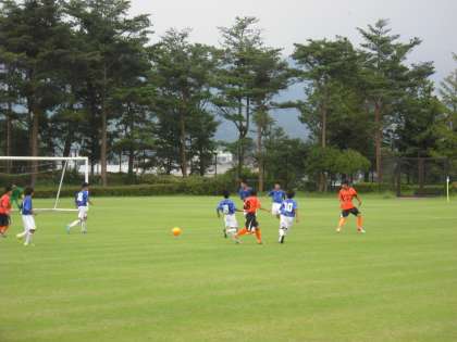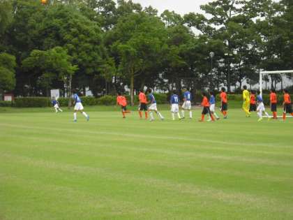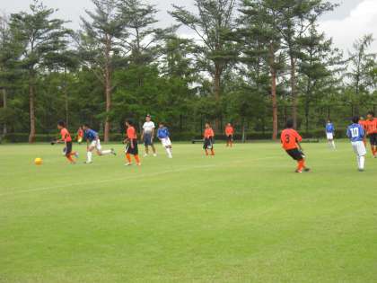 サッカー部は地元のチームを招いて練習試合を行いました。天然芝の最高にいい状態のグランドを借りることができ、思い切り楽しみました。