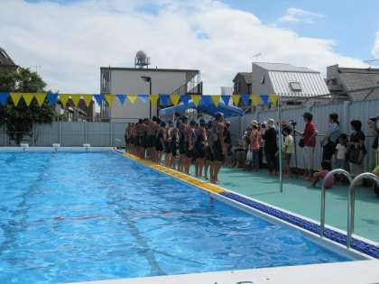 3日(土)、水泳部が取り組んできたシンクロを保護者、生徒などに披露しました。天候にも恵まれ多くの方に参観していただき練習の成果を発揮することができました。