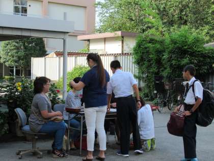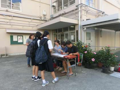 9日(土)朝、英検の申し込みを行いました。本校では年2回、学校運営委員会、PTAのご協力をいただき希望者を対象に英検を行っています。今回は10月9日(日)に行うもので、110名以上の申し込みがありました。
