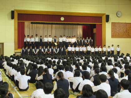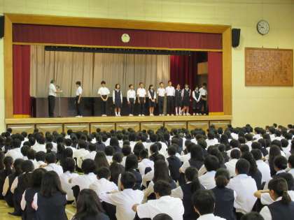 9月30日(金)に行われた区陸上競技大会の表彰式を行いました。夏休み中の選考会からおよそ1か月間練習をしてきました。当日は学校代表として持てる力を精一杯発揮できました。また、生徒会役員及び一斉委員会の任命式も行われ、校長先生から任命状を渡され、どの生徒も千歳中のために活躍するという決意を新たにしました。