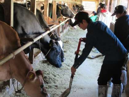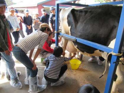 ミルクランドに到着しました。昼食をとった後、クラス毎に酪農体験をしました。