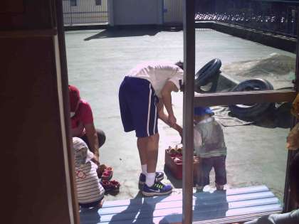 芦花公園での整地作業・上祖師谷保育園で園児とのふれあい笑顔があふれていました。