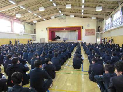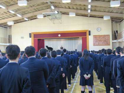 1月10日に第3学期始業式が行われました。校歌斉唱・校長先生の講話などしっかりとした態度で臨めました。3学期もきちんとした生活をしていこうという気持ちが伝わってきました。