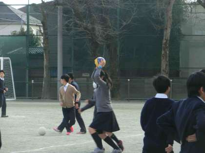 日本列島に強い寒気団が近づくなか、寒さにまけず、昼休みに校庭でおよそ50名が元気よく遊んでいます。午後の授業にむけてのリフレッシュ。
