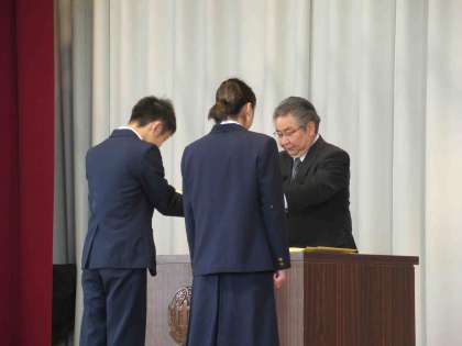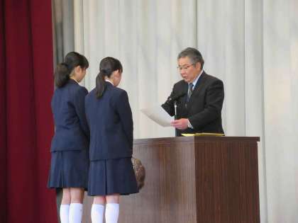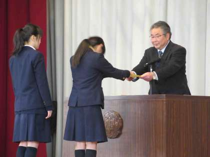 引き続き、社会を明るくする運動の作文コンクールの入賞、テニス部の研修大会そして地域のボランティア活動の認証証の授与。生徒たちの多方面にわたる活動を表彰しました。