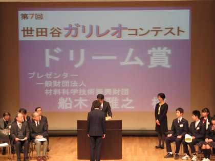 4日(土)第7回世田谷ガリレオコンテストが成城ホールで行われました。2056件の応募の中から1次審査を通過した9名による研究発表です。本校からも2年生1名が参加し、「アメンボはどうして水に浮くことができるのか」をテーマにした研究を発表しました。身近な疑問に対して豊かな発想と想像力に富んだ発表を行い、優秀賞にあたる「ドリーム賞」に輝きました。今後さらに多くの生徒が科学に興味を持つことを期待します。