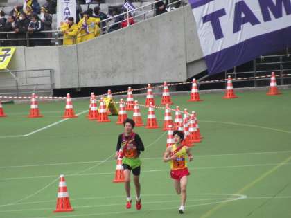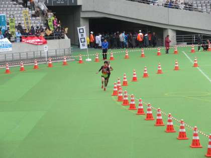 5日(日)第8回中学生東京駅伝が味の素スタジアムで行われました。東京各区市町村の代表が女子30キロ、男子42.195キロをそれぞれ16,17名がタスキを繋いで走る駅伝競走です。本校からも男子1名が13区に出場しました。6,7番目でタスキを受け取り3キロを走りぬき、見事5位でタスキを受け渡しました。