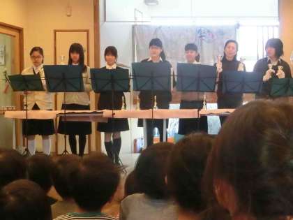 8日(水)午後、つくしんぼ保育園に6名が訪問し、ハンドベルを演奏してきました。去年の暮の芦花ホームの時より緊張せず、日頃の成果を発揮することができました。