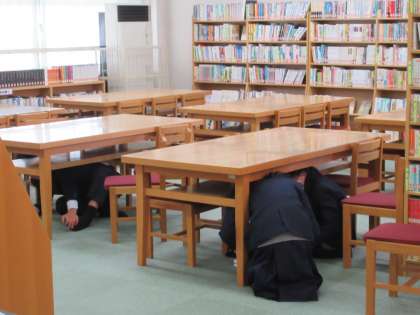 13日(月)避難訓練を行いました。今回は「昼休み中に緊急地震速報を受信した」という設定で行いました。その時の自分がいる場所での状況に応じた安全確保が取れるようになることが目的です。