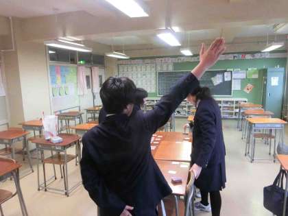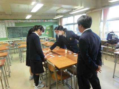 3月4日(土)の「区百人一首大会」にむけて、放課後に自主的な練習が行われていました。本番さながらに素早い動きと気合が入った声が教室に響きわたっていました。良い結果を期待しています。