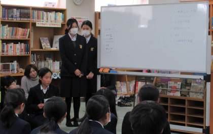 1日(水)定期考査が終わった放課後、図書委員会主催のビブリオバトルが行われました。今回バトラーに名乗り出たのは6名で、各自が推薦する1冊の本を紹介しました。30名以上の生徒の前でそれぞれが熱く語り、質問も多く活気あるビブリオバトルとなりました。チャンプ本は「ここはボツコニアン」になりました。