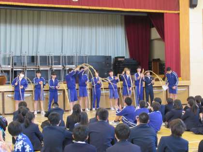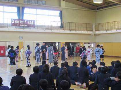 生徒はあらかじめ9つのコース(和菓子・玉すだれ、木材建築、茶道、講談、折り紙、わら文化、日本舞踊、狂言)から1つを選択しそれぞれ学習します。2時間学んだあと、全体で集まって、学んだことを発表します。