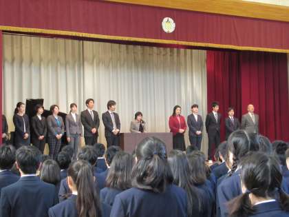 今年度千歳中に新しく着任された先生方の紹介のあと、始業式が行われました。昨年度の修了式から2週間しかたっていませんが、その態度・姿勢から新2年生、新3年生の自覚が感じられる生徒が多く見られました。