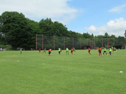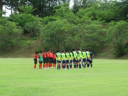 サッカー部はグリーンヒル八ヶ岳で、地元の韮崎東中学校と練習試合を行いました。