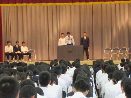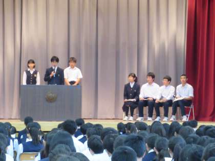6日(金)第49期生徒会役員を決める立会演説会、選挙を行いました。定員7名のところ13名が立候補しそれぞれの公約を演説していました。どの候補者も、千歳中をよくしていこうとする意気込みにあふれ、すばらしく、頼もしかったです。