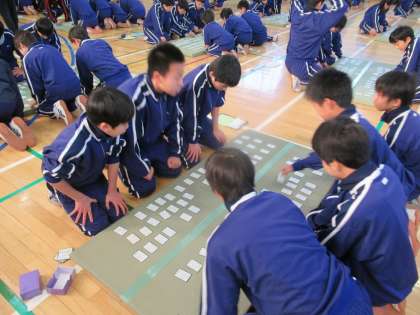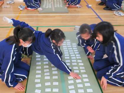 9日(金)1年生は1校時体育館で百人一首大会を行いました。実行委員が早めに登校し、畳を並べるなど準備してくれました。
