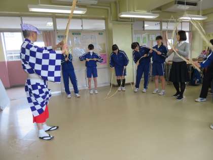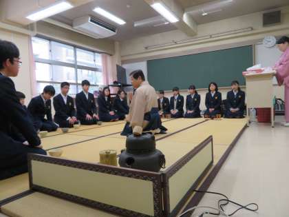 10日(土)3年生は教科「日本語」で学習している日本文化の実際を学ぶため、地域の方々を講師としてお招きしました。生徒は和菓子、玉すだれ、木材建築、茶道、講談、着付け、わら細工、日本舞踊、狂言、風呂敷の10講座から選択し実際に体験しました。