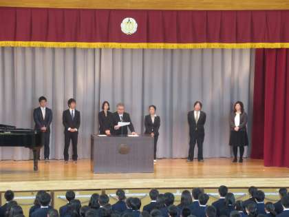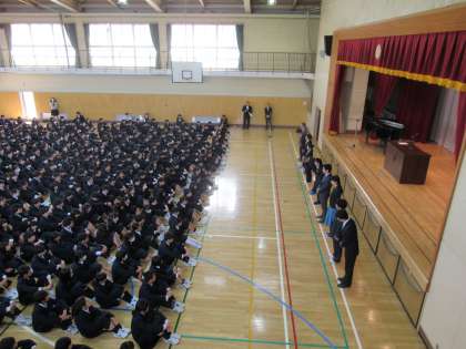 6日(金)平成30年度1学期始業式を行いました。期待と不安を抱えながら登校した生徒達も着任式、担任発表と式が進み、始業式では頑張るという決意に表情も輝いていました。これから1年間よろしくお願いいたします。