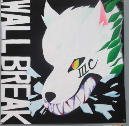 運動会を盛り上げようと各クラスで応援旗を作成しました。現在は連絡通路に掲示してあります。運動会当日は校舎3階に掲示されます。