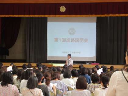 8日(金)午後、平成30年度第1回進路説明会を行いました。250名以上の保護者に参加していただきました。中学校卒業後の進路選択に向けて、日程、手順、仕組みなどを説明しました。