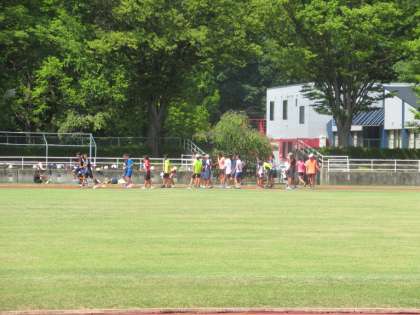 陸上部は韮崎中央公園陸上競技場で練習です。