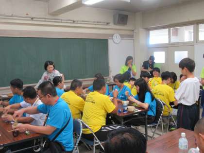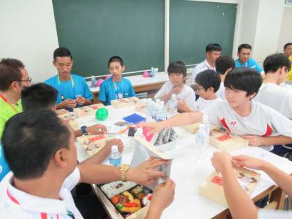 今年は英語部、文芸部、美術部の生徒がけん玉や折り紙などの日本の文化を紹介したり、吹奏楽部が演奏を披露しました。また、青少年委員の山本様のご協力のもとお茶をもてなすこともできました。また卓球部の生徒は明日からのスポーツ交流のサポートにも活躍してくれます。