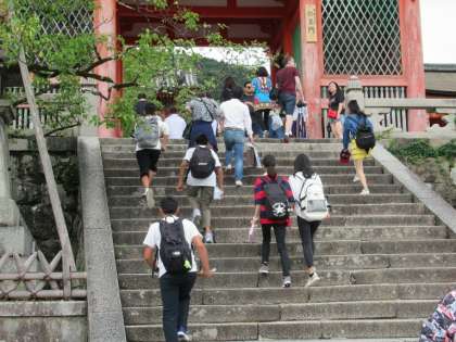 清水寺はいつも混雑しています。残念ながら、2時過ぎに雨が降り始めてしまいました。