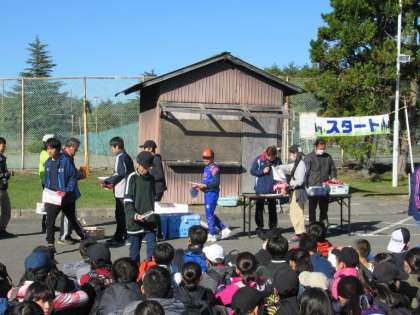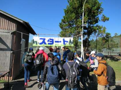緑の休暇村でオリエンテーリングです。説明を受け、道具を持って班毎に出発です。