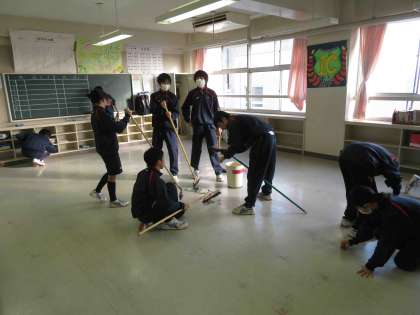 担当の個所を心を込めてピカピカに磨き上げ、新年を迎える準備ができました。ほとんどの生徒が責任をもち、取り組んでいました。ここ数年、毎回次の日の朝、早く登校してきた生徒が自発的に廊下に出ていた椅子や机を戻してくれています。