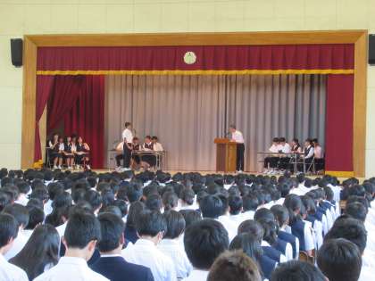 24日(金)5・6校時に生徒総会が行われました。議長団の選出から始まり、生徒会運営委員会や各種委員会からの平成30年度の活動報告。そして今年度の活動計画が提案され、承認されました。質疑応答も活発に行われ、生徒全員が生徒会の一員であると自覚できた有意義な時間を過ごしました。