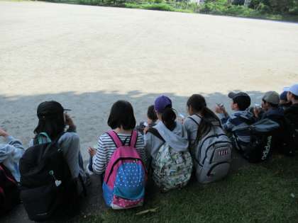 フィールドセンターから宿舎に戻り軽食をとります。子どもたちの動きもスムーズになり、大人数ながら予定通りすすんでいます。