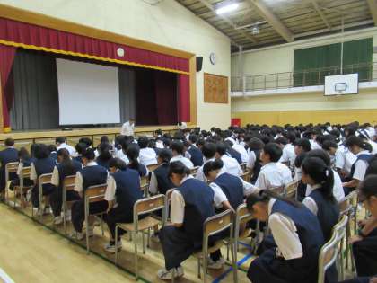 1日(月)午後、1年生と保護者対象にセーフティー教室を実施しました。成城警察署から斎藤スクールサポーターをお招きし、子どもたちの身近にある危険とその対処法を「落語」を交えながらわかりやすくお話していただきました。