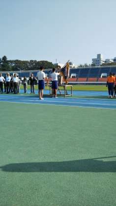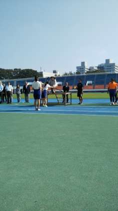 開会式で昨年度の優勝旗返還しました。これから三連覇に向けて、大会スタートします。選手の皆さん、頑張ってください。