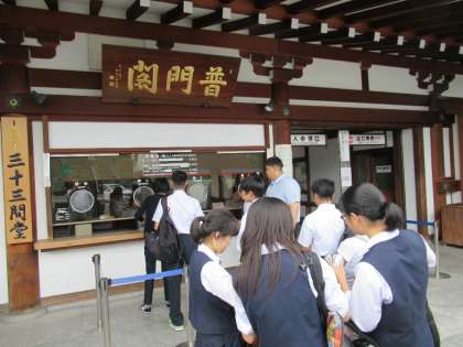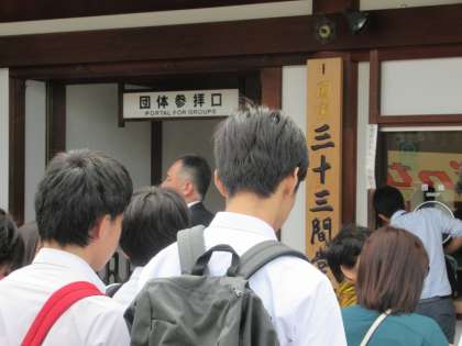 三十三間堂も多くの班が見学コースに入れています。雲のお陰で日差しが強くなく、快適です。