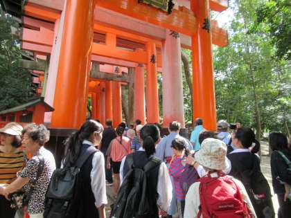日曜日とあって、伏見稲荷は大変混雑しています。千本鳥居も人で一杯です。
