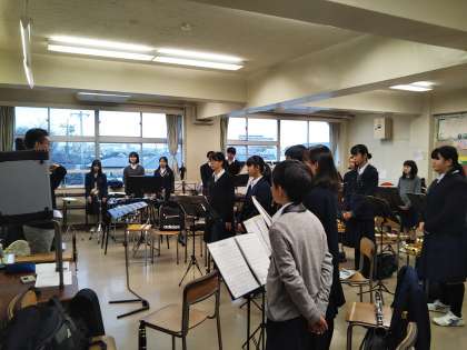 今日は世田谷区の事業の一つとして部活支援があります。外部より、佐藤博之さまを講師にお招きして、吹奏楽部の指導をしていただいています。