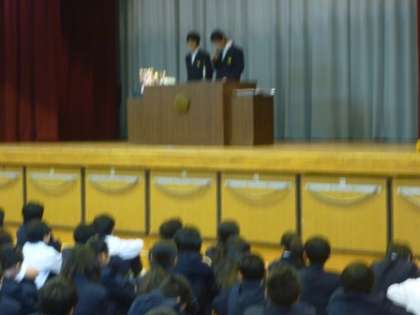 3年生の代表が、修学旅行に向けてこれまでの平和学習について発表してくれました。そして、最後には平和宣言を行いました。3年生は明日から修学旅行になります。