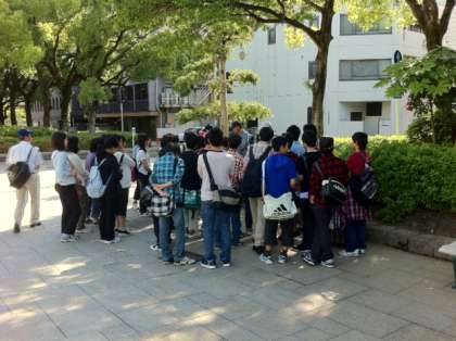 ボランティアのガイドさんの案内で平和公園を見学します。