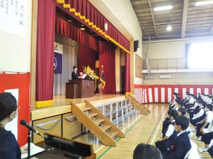 3年生の代表生徒による歓迎の言葉です。1年生の真剣な眼差しがとても素晴らしいです。